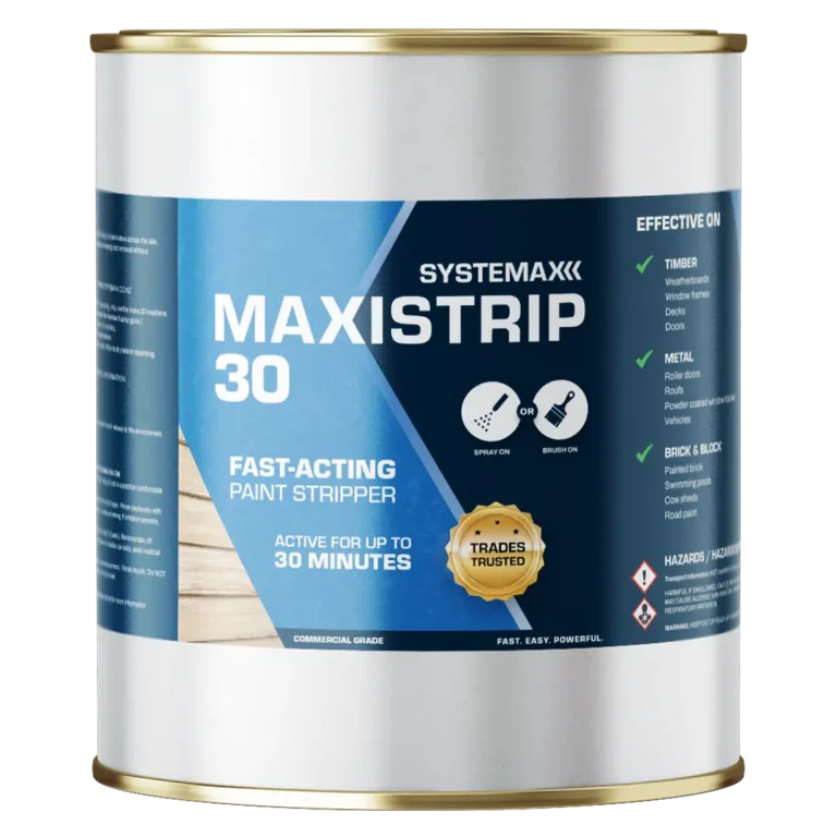- MAXISTRIP 30 is an all purpose paint stripper used to target removal of failing top coats, as a prep tool to reaching suitable substrate or for complete removal of all layers to bare surfaces.MAXISTRIP 30 works on 2-pot, acrylic, enamel, varnish, powder coating, and lacquer. An ideal prep tool for removal of failing top coats, through to complete removal back to bare surface. Also used for graffiti removal.