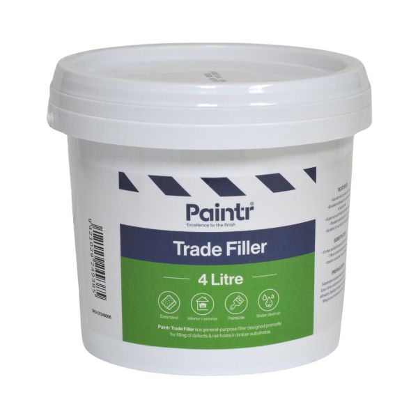 Paintr Trade Filler is an easy-to-use general purpose painters wood filler. The non-toxic single pack formula is environmentally friendly and makes it ideal for use in residential applications. Suitable for filling holes and imperfections in a variety of interior and exterior applications.